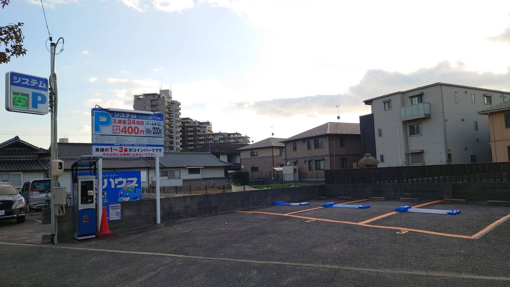1番から3番車室までがコインパーキングとなっておりますので、